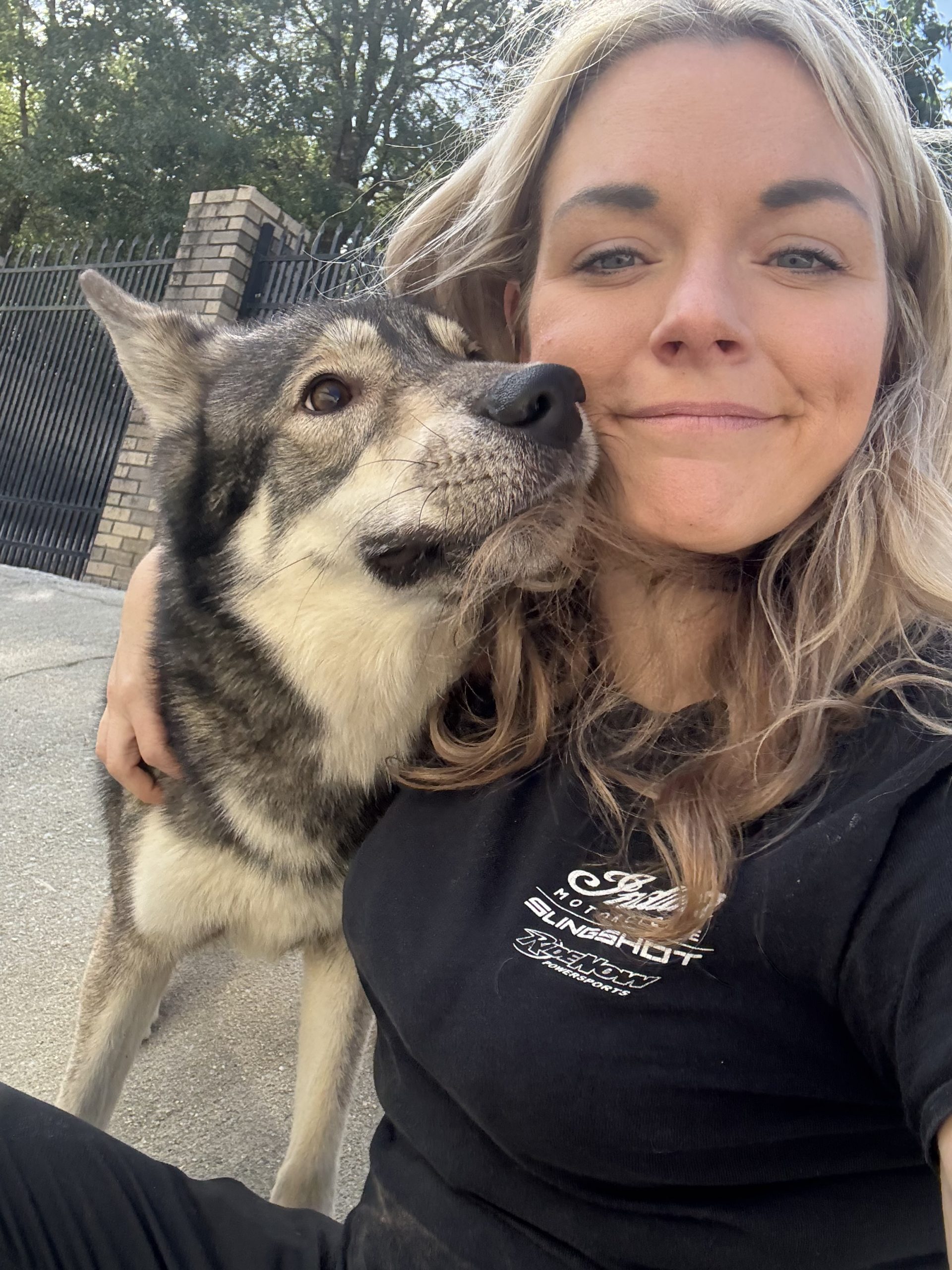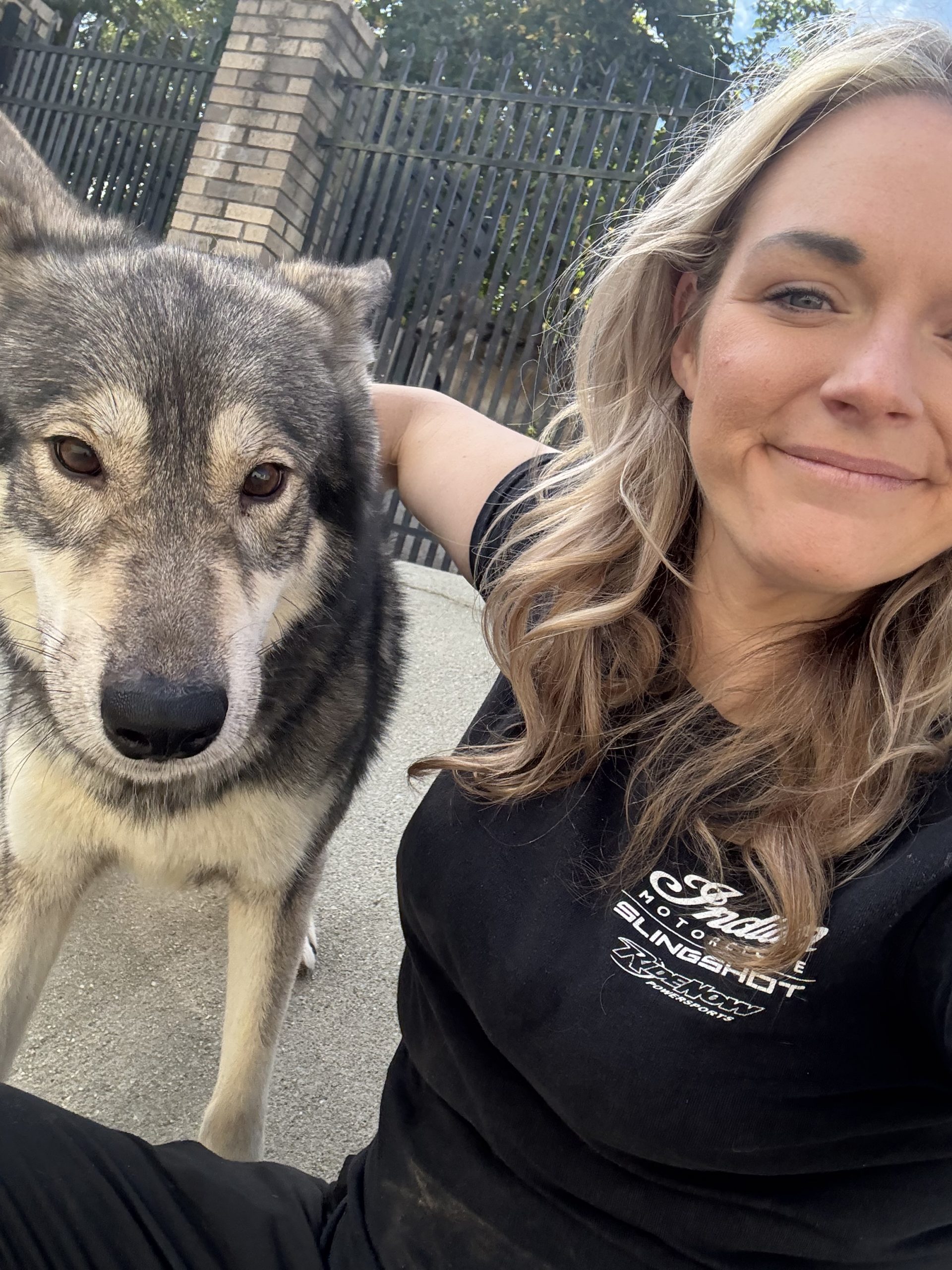 Alexa is a beautiful American Tamaskan (husky/GSD/malamute). She is sweet but a little shy. She doesn’t have a mean bone in her. She is very smart and can jump over a 5 foot fence easily but has good recall and is very food motivated.
