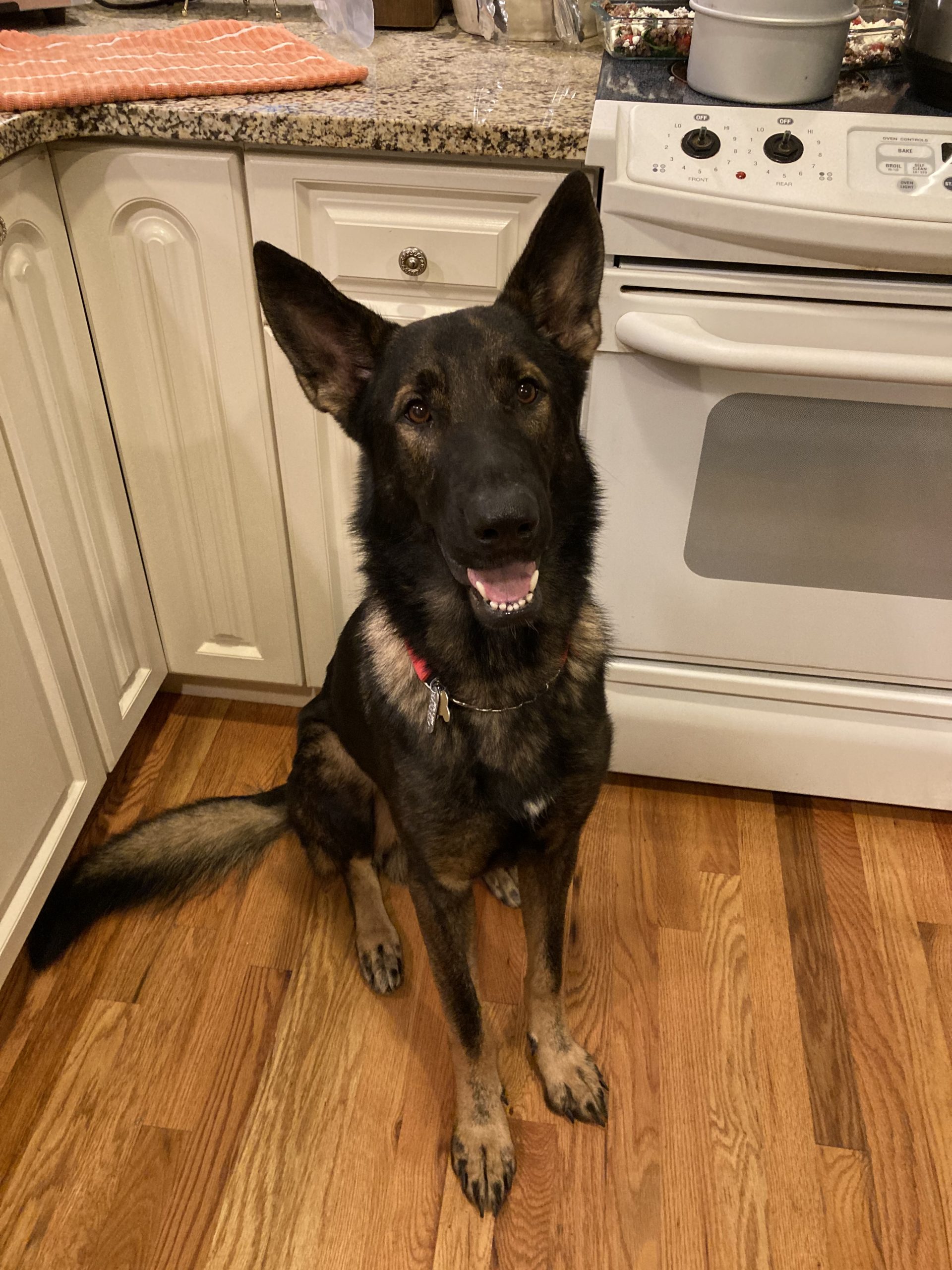 This smart boy is house-trained and crate-trained, and he’s already familiar with living indoors. He walks decently on leash and is working on perfecting the “heel” command — he’s eager to please and learns quickly with consistency and patience.
