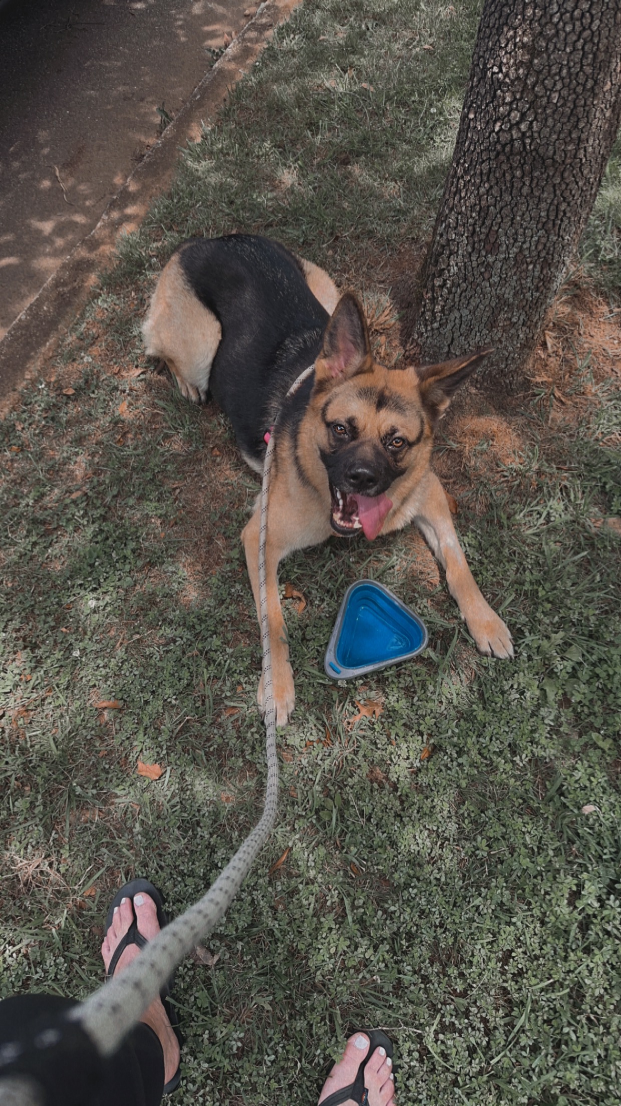 Hi, I am Callie. I am a three year old GSD. I am tri colored but primarily brown. I am a very energetic, cuddling dog. I love to be outside and going on walks. I also love being inside just laying around taking a nap some days. I come from a home where I have been around small and large dogs as well as a cat. I do bark sometimes but it is not aggressive, it is a friendly get to know you bark. I am house and crate trained. I have a brother on here, his name is Shadow, I would love to be rehomed with him if possible.