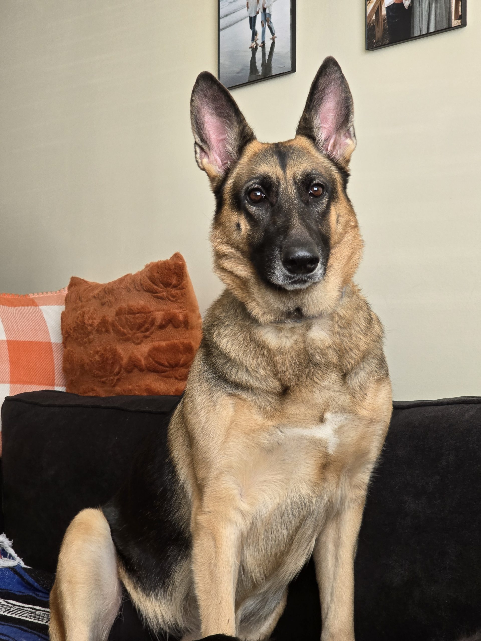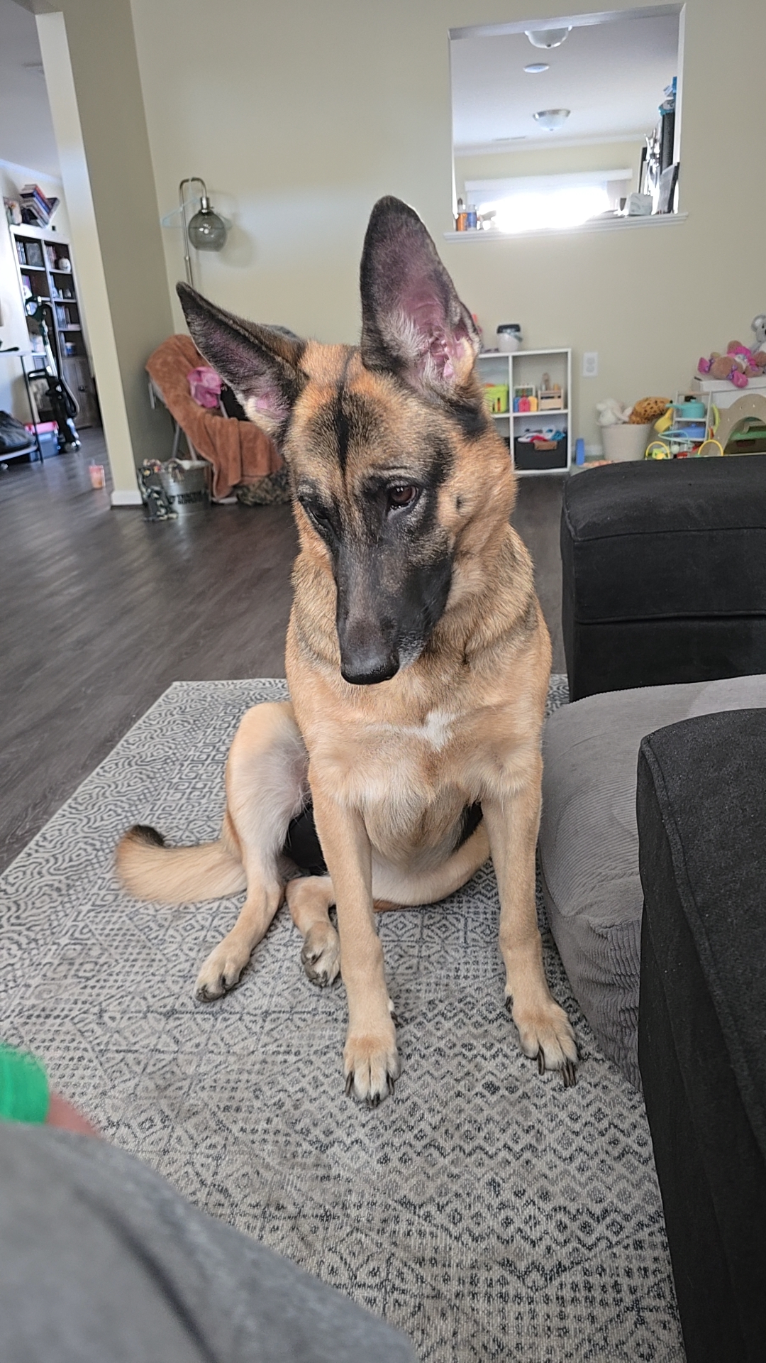 Delta is a very chill girl. She is crated when not watched and at night. She is a big fan of the trashcan. If she is placed with small children she will hoover for food. She is also crated during meal time to avoid conflict (growling and barking) with other dogs/children. She knows a few commands and she does need some leash work.