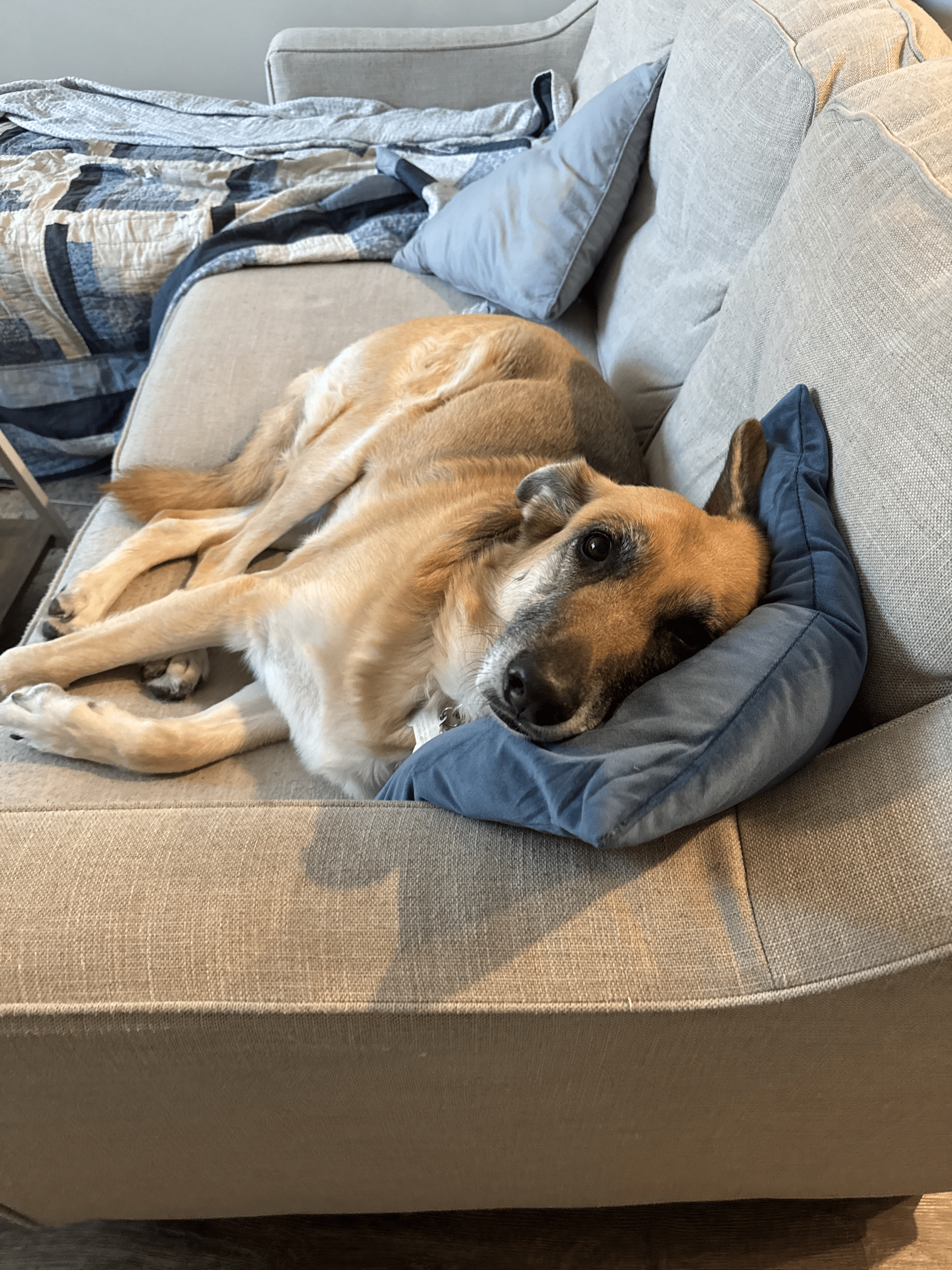 Dezzi is an incredibly sweet and loving girl. She is a "senior," but she is definitely still full of energy and life. She loves going on walks and sniffing outside, but also cuddling. She rarely barks (maybe twice inside the house the entire four years I've had her). I tried crate training her when I first got her, but it made her very anxious, so I was not successful with that.