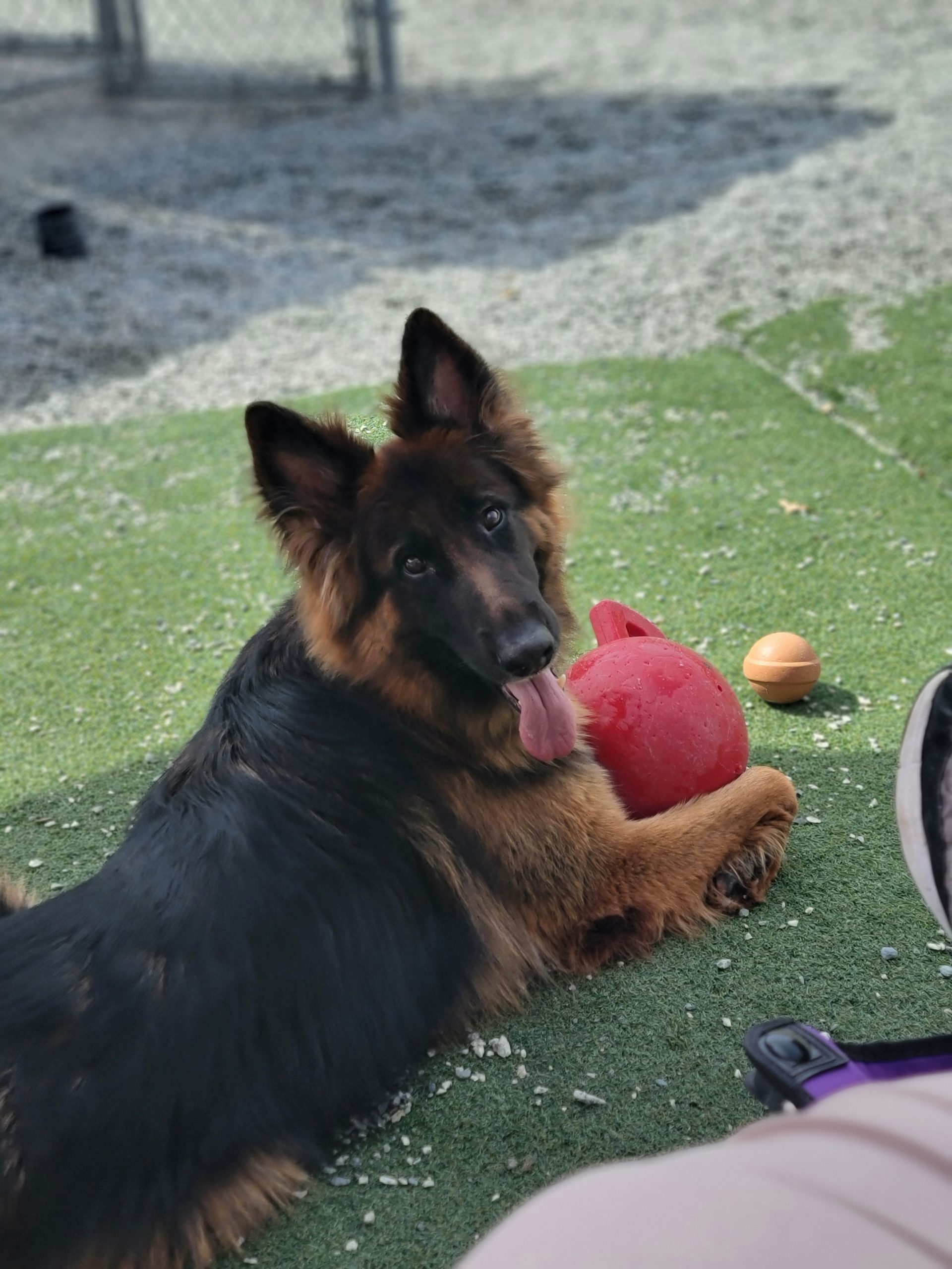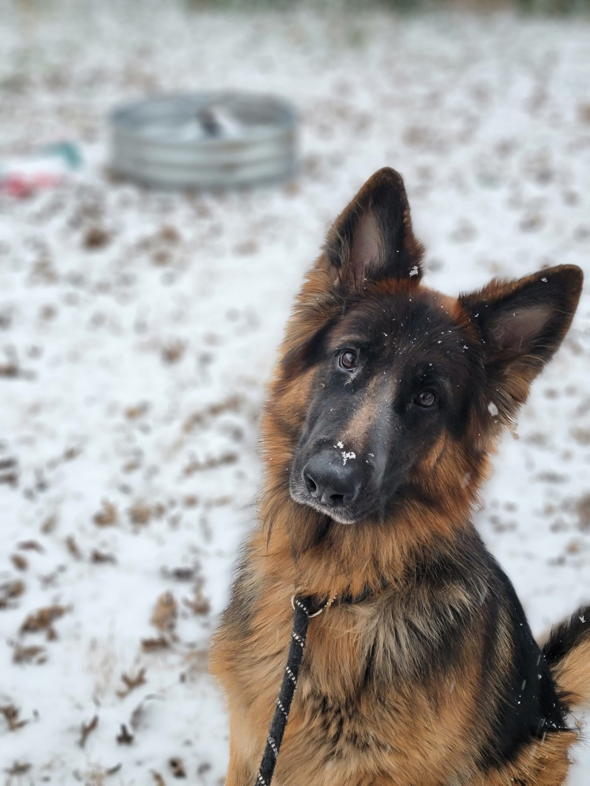 Four-year-old long-haired German Shepherd with a sweet, loyal, and very affectionate personality. He is highly intelligent and eager to engage with his person, often wanting to stay close and follow you from room to room. He can have difficulty settling at times and may pace or whine, but this has improved with neutering and medication and would likely continue to improve in an active, structured home.