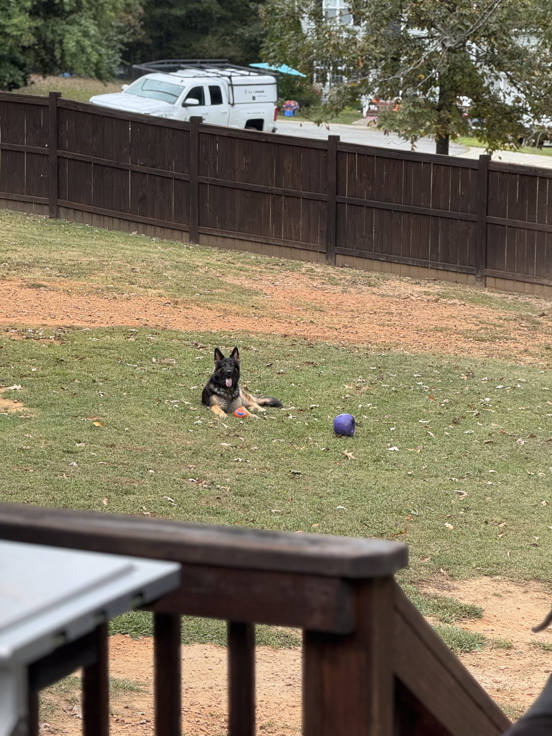 Okay this dog is for experienced handlers only!! She comes from a working line and is a true working GS, and has to have a daily job. I wanted to use her as a cadaver dog, but wasn’t able to finish training her due to my physical injuries at the time. She must be stimulated mentally and physically daily, which includes long walks open runs in open fields, and daily throwing of the Kong or a ball. If you are looking for a lazy couch potato, she is not your dog. She is a fun loyal outgoing, and loving when she wants to be. But always by your side to please her handler.