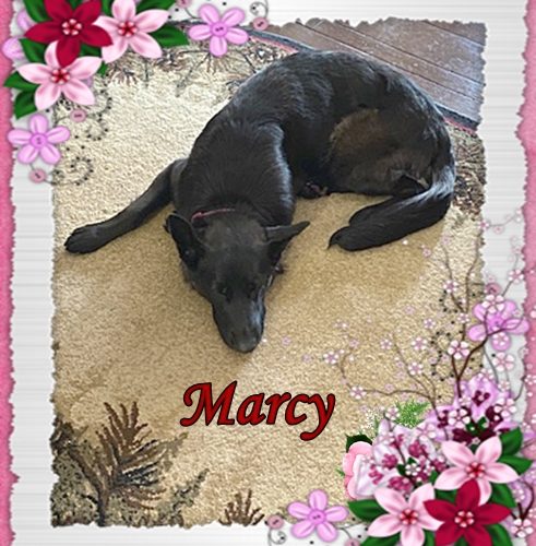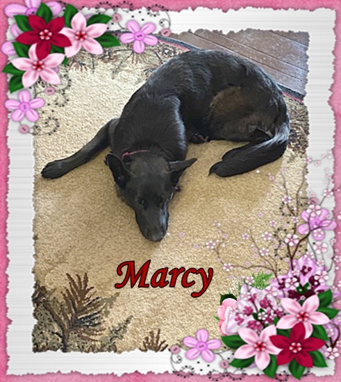 Marcy is a medium long-hair black German Shepherd. She has been spayed and is current on vaccines. She is a great guard dog letting me know if anything is causing her concern. However, she is not aggressive at all. She gets along with all dogs and my cat (has not been around other cats but does not appear to have a prey drive whatsoever). She is affectionate, housebroken, gets in her bed at command, will always come when called, and will get in her kennel by just opening the door. She sleeps in my bedroom at night and is an indoor dog (black, long-hair dogs should never be left outside in the heat and humidity of the day since black attracts heat). She gets to go out 4-5 times in a large fenced area with the other dogs. She is definitely GSD intelligent. She is an active girl and needs exercise. A person who is active (hiking, walking, running, etc.) would be the best for her. She loves to play and gets super happy when I open the gate and we walk around the property.