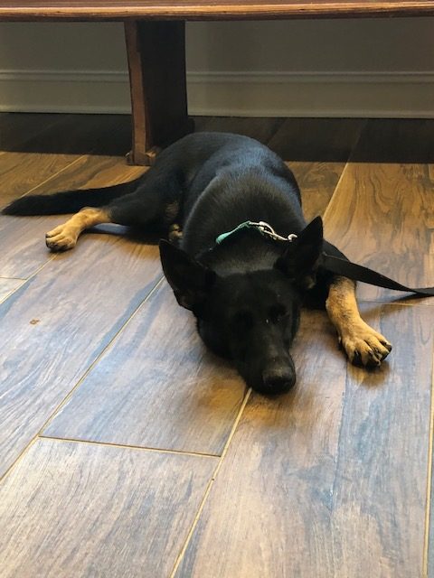 Misty can be a little shy around new people, but warms up quickly. She is extremely smart and learns fast. We are working on her basic obedience training but honestly, she is just so easy going. She walks terrific on leash and enjoys sniffing and making friends on her walks.