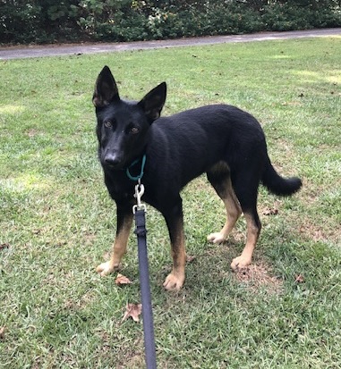 Meet Misty a sweet, gentle black bicolor German shepherd. We estimate Misty to be around 6 months old. She is a petite girl and will probably be on the smaller size when she is ful l grown - maybe 60 lbs. She is laid back and very calm.