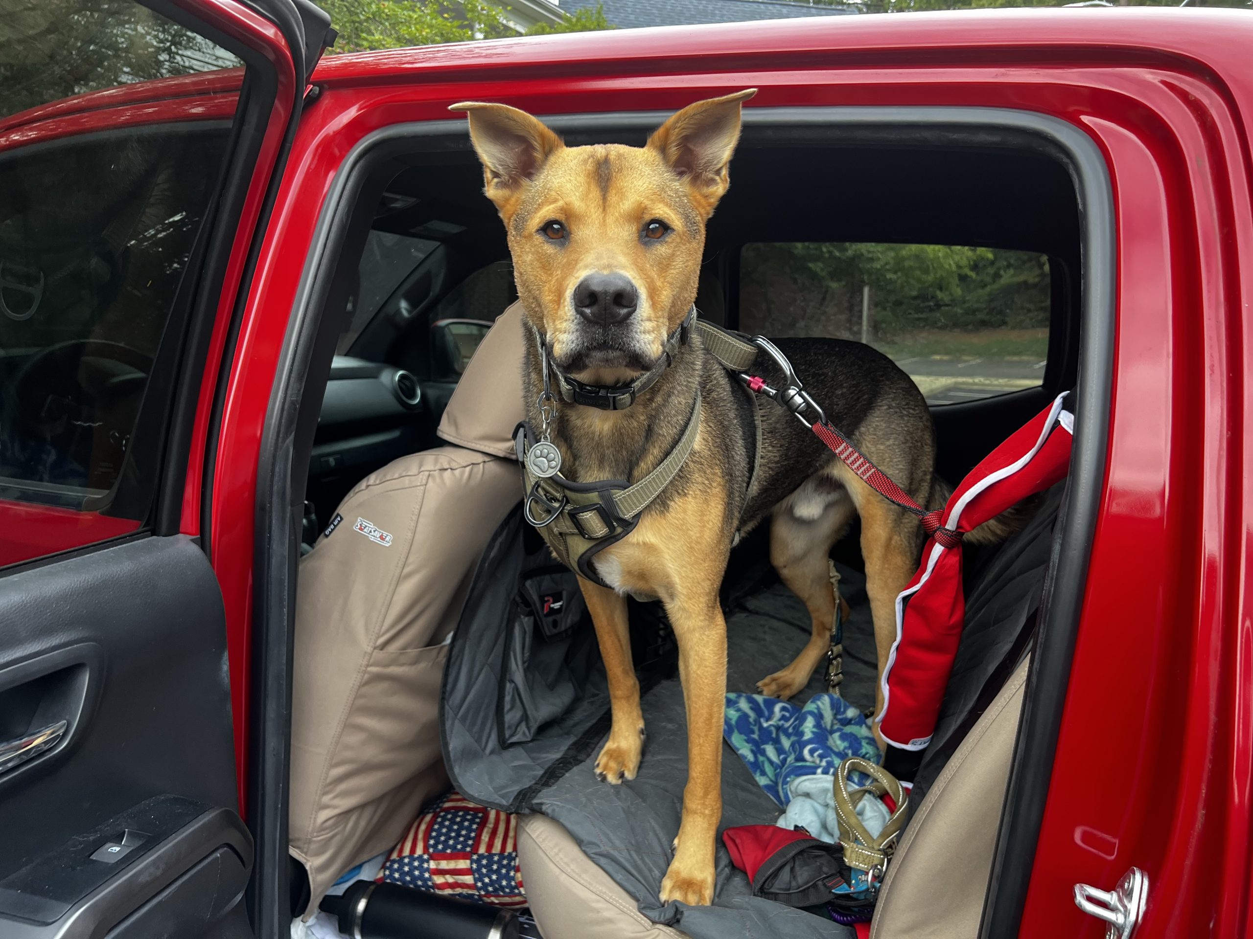 I did a DNA test kit on him when he was a puppy and it said he was 28% pit bull, 20% german shepherd, 9% chow chow, and a small percentage of other breeds like lab. It also said he wasn’t predisposed to any health problems.