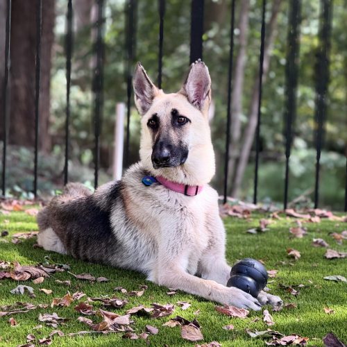 This sweet girl would thrive in an active home with a fenced yard and another dog companion. She’s very people-oriented and will do best with someone who can give her structure, exercise, and plenty of love.