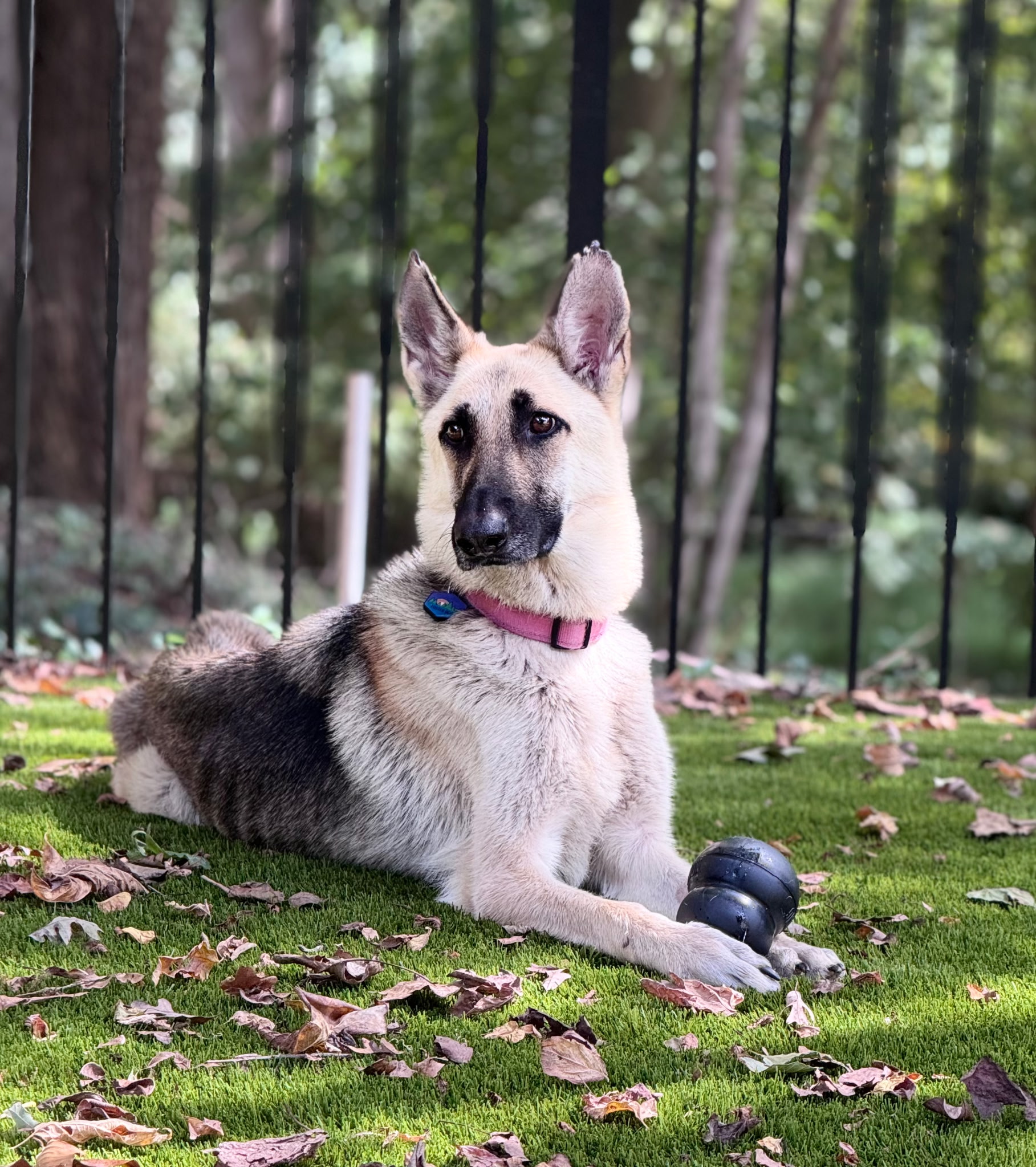 Nora is outgoing, affectionate, and loves meeting people. She leans into attention, thrives on human contact, and greets new friends with calm curiosity rather than jumping. She’s energetic and playful, still learning her leash manners, but eager to please—especially when treats are involved.
