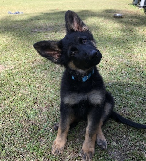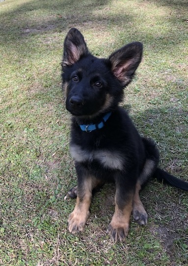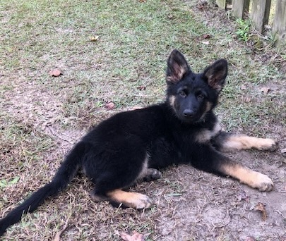 Ransom can be an only dog or would do well with a male companion dog. We will not place her in a home with a female dog. She is fine with female dogs right now, but she is showing signs of being a typical female shepherd and two females in a pack is not a good idea. Ransom is doing great with potty training and needs consistent outings to continue her training.